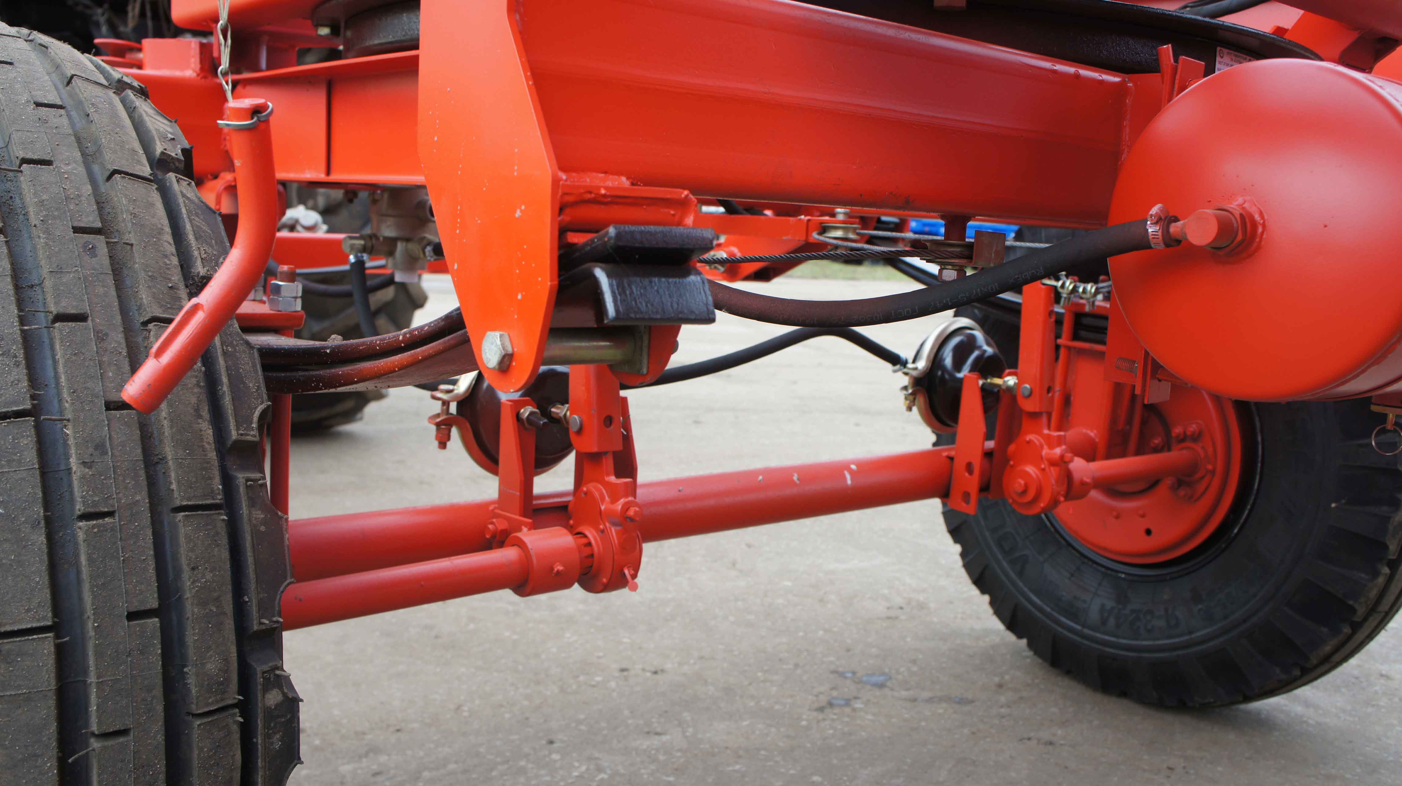 Самосвальный прицеп 2ПТС-4,5 способен справиться с работой в условиях дорог общей сети, а также в полевых условиях. Прицеп агрегатируется с сельхозтехникой тягового класса 1,4 т, которая оснащена раздельно-агрегатной гидросистемой и имеет тягово-сцепное устройство согласно ГОСТу 2349. Обязательное условие – наличие у колесного трактора выводов для подключения пневматической тормозной системы, разгрузочного механизма и прочего электрооборудования. Разгрузка прицепа 2ПТС-4,5 трёхсторонняя. Новшество модели – улучшенные основные борта прицепа, которые изготовлены из профильного стального листа на прокатном стане. Благодаря этому борта имеют повышенную жесткость и эстетический внешний вид. Обварка стальных бортов выполняется с помощью роботизированного комплекса, что лучшим образом сказывается на качестве сварочных швов. Новый улучшенный замковый механизм бортов позволил сделать запирание бортов более удобным и надежным. Более прочным стал каркас надставных бортов, который теперь изготавливается из труб 60x40x2. Также увеличился объём кузова, что позволяет перевозить грузы большего объема при условии, что не будет превышена грузоподъемность транспортного средства.