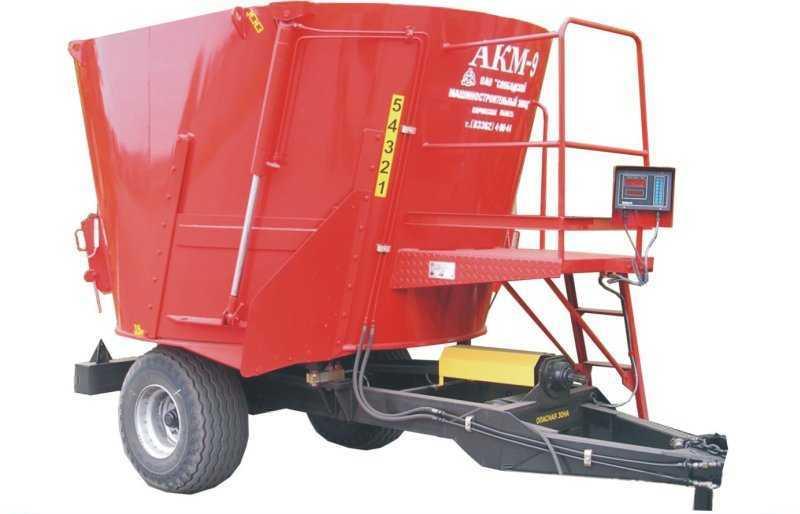Модельный ряд кормораздатчиков АКМ-9 с выгрузным транспортером представлен агрегатами с объемом бункера от 7 м3 до 11 м3.