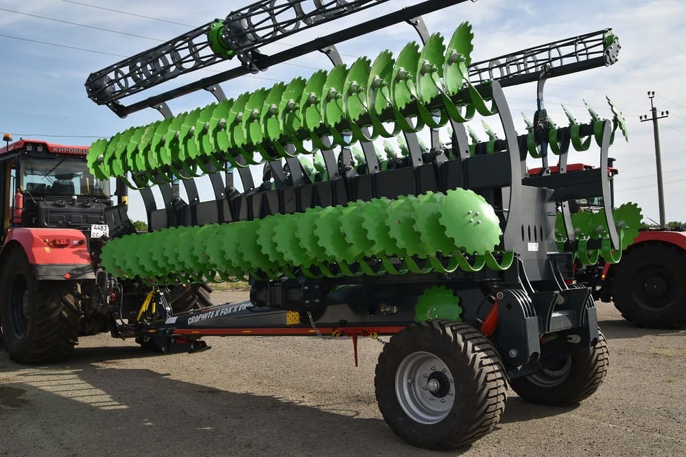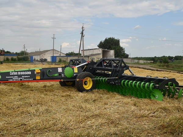 Дисковая борона Carbon D10500 на подпружиненной стойке (3D), как и лущильник дисковый, предназначены как для поверхностной стерневой обработки на лёгких и средних почвах, так и для предпосевной обработки почвы для посева по мульче или после вспашки, идеально работает по парам.