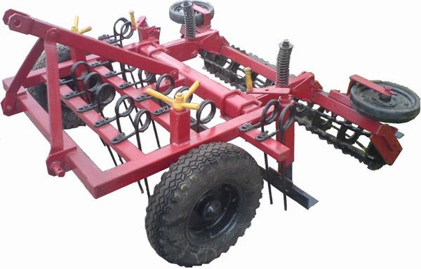 рыхлит поверхность почвы, утоптанной лошадями, смешивая насыпь;