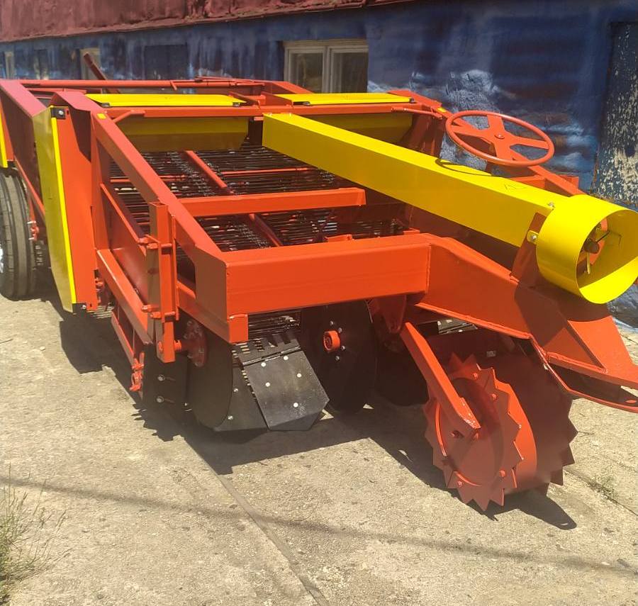 Копатель-валкователь универсальный УКВ-2 на междурядье 90 см., предназначен для одновременного выкапывания клубней картофеля из двух рядков, частичного отделения клубней от почвы и растительных остатков и укладки их в валок в междурядье расположенных рядом неубранных рядков для последующего подбора картофелеуборочным комбайном.