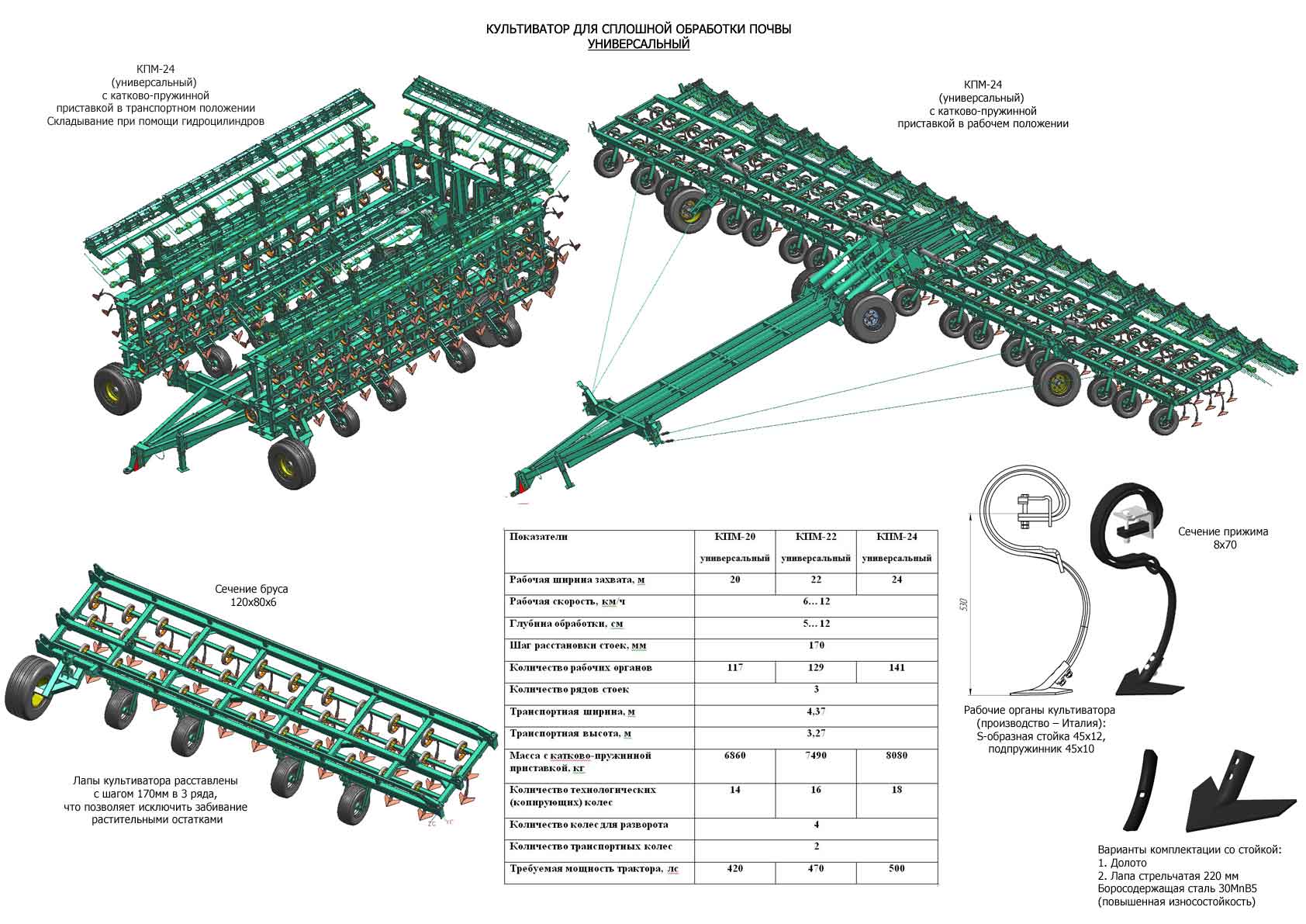 Предназначен для ранневесеннего закрытия влаги, паровой и предпосевной обработки всех типов минеральных почв, за один проход по полю обеспечивает полную подготовку почвы к посеву, совмещая культивацию, рыхление, выравнивание и предпосевное прикатывание почвы с созданием в посевном слое уплотненного ложа для семян.