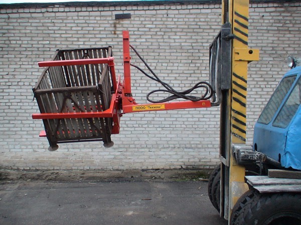 Навесной опрокидыватель контейнеров КО-1 – это мобильное гидравлическое оборудование для выгрузки содержимого контейнеров в хранилище или емкость для дальнейшей транспортировки. Машина агрегатируется с самоходным погрузчиком и поднимает контейнеры шириной до 1600 мм и весом до 1200 кг.