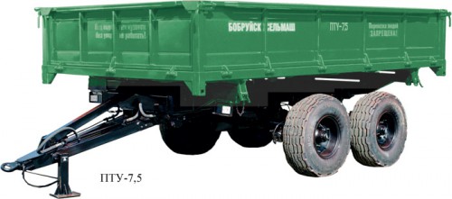 Полуприцепы тракторные универсальные ПТУ-7,5 предназначены для транспортировки различных строительных и сельскохозяйственных грузов. ПТУ-7,5 без надставных бортов – разгрузка на три стороны.
