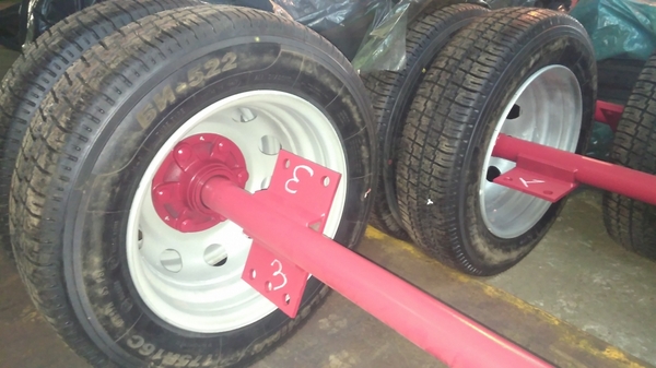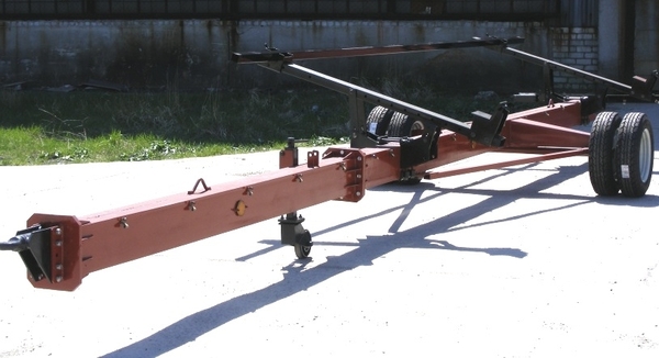 Тележки предназначены для перевозки жаток (от 6 до 9 м), в том числе с навешенными на жатке приспособлениями
